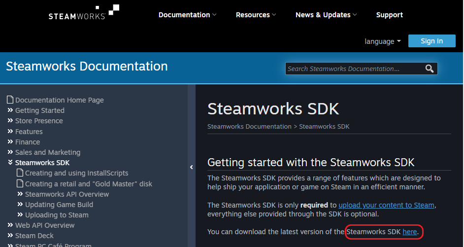 스팀 웍스 SDK를 다운받습니다.