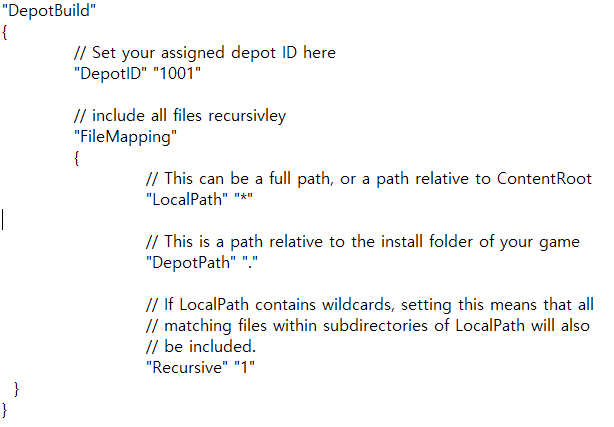 Depots은 depot_build 파일의 depot ID 와 경로 / 파일명을 입력합니다.
