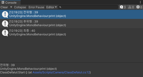 후위형은 39에서 계산은 나중에 처리되기 때문에 39가 먼저 출력된 후에 1이 증가합니다.